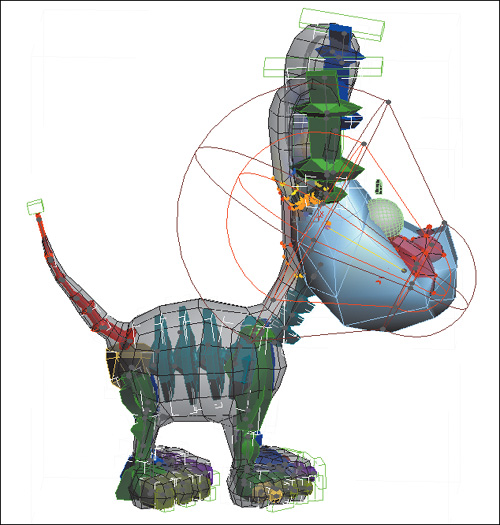 The head envelope is often in need of adjustment. It often happens that your character mesh has a shape that is very different from the default biped mesh. If your character is a dog or dinosaur, for instance, it may have a long snout or extended jaws that don’t match the humanoid head that the biped comes with.
