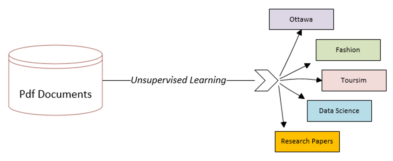 Unsupervised machine learning algorithms can also be applied to a repository of unstructured textual data—for example, if we have a dataset of PDF documents, then unsupervised learning can be used to do the following: