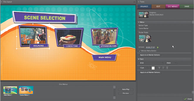 5 Click the Scene Selection title in Scenes Menu 1. Adobe Premiere Elements