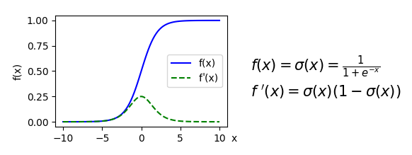 - Sigmoid: Its output is bounded between 0 and 1 and can be interpreted stochastically as the probability of the neuron activating. Because of these properties, the sigmoid was the most popular activation function for a long time. However, it also has some less desirable properties (more on that later), which led to its decline in popularity. The following diagram shows the sigmoid formula, its derivative, and their graphs (the derivative will be useful when we discuss backpropagation):