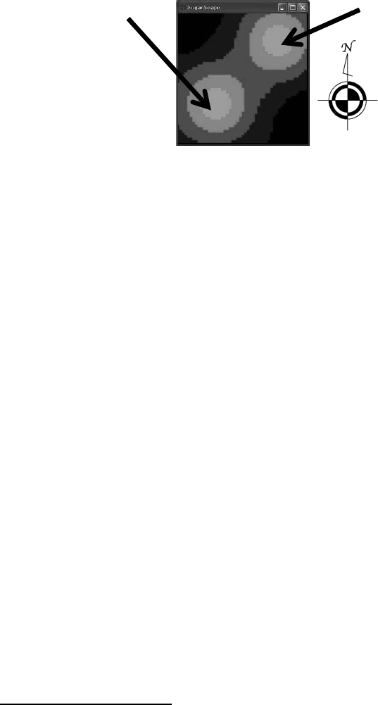 FIGURE 7.30: Two sugar (gre e n) mountains in the Sugarscape model.