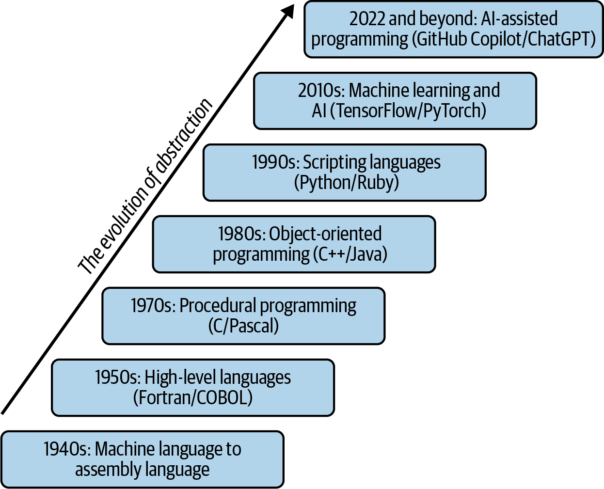 プログラミング言語の進化( )の重要なテーマは抽象化である。これは、開発者にとってシステムがどのように使いやすくなっていくかを説明する空想的な方法である。面倒な細部がバックグラウンドで処理されれば、開発者は最も重要なことに集中できる。これが技術革新の原動力となり、インターネット、クラウド・コンピューティング、モバイル、AIなどの画期的な進歩を可能にしてきた。