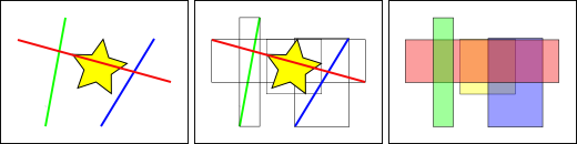 For a given set of geometries, the MBR for each one is defined. The MBR for each is what is retained in the index. The following image shows an example of these first steps:
