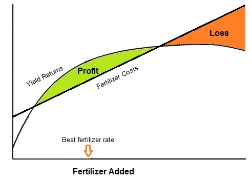 Considering costs versus benefits as a way to target the optimal ratio that maximizes profit is important in all industries. The following diagram shows how farmers consider cost and the amount of fertilizer versus the resulting yield and crop prices: