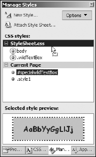 Manage Styles), as shown in Figure 10-6.Figure 10-6. The Manage Styles pane shows embedded and linked style sheets.