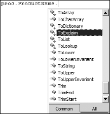 When you type in Code view (see Figure 8-6), you've no doubt seen IntelliSense pop up all those interesting functions like ToLower(), ToUpper(), and ToExclaim(). Okay, maybe you haven't seen ToExclaim() yet in IntelliSense, but you're about to!