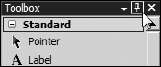 By default, the Toolbox plays peeka-boo to give you the maximum screen real estate as you work in the page editor. If you want the Toolbox to remain visible, pass your mouse over the Toolbox tab and click the pushpin so the pushpin becomes vertical, as shown in Figure 2-12.