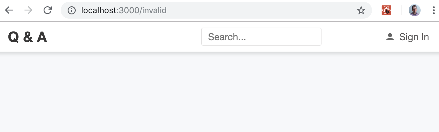 So, nothing is rendered beneath the header when we browse to a path that isn't handled by a Route component. This makes sense if we think about it.