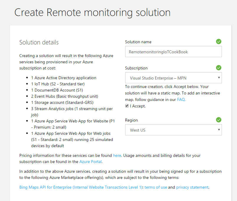 - To create a remote monitoring solution, navigate to the following site: azureiotsuite.com.
