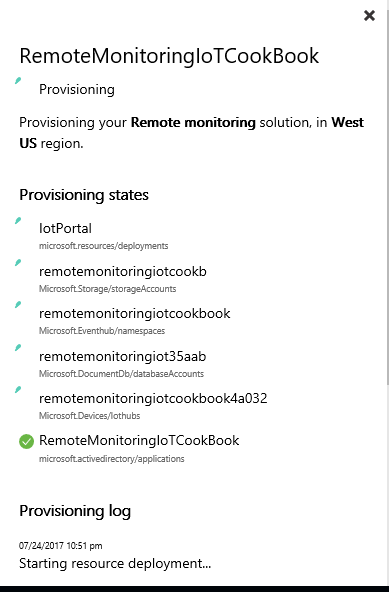 - Azure IoT Suite will take a few minutes to configure and set up the remote monitoring solution:
