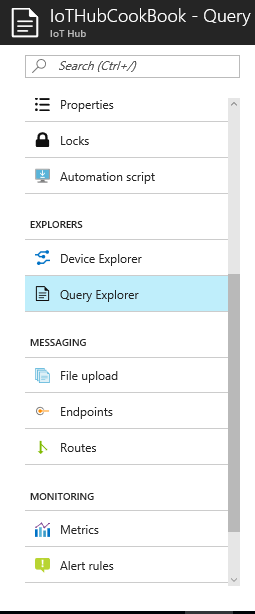 we will select the IoT Hub IoTHubCookBook service from the Azure portal.