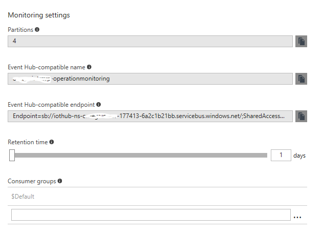 Operation monitoring also exposes the event hub connectivity for these monitoring events: