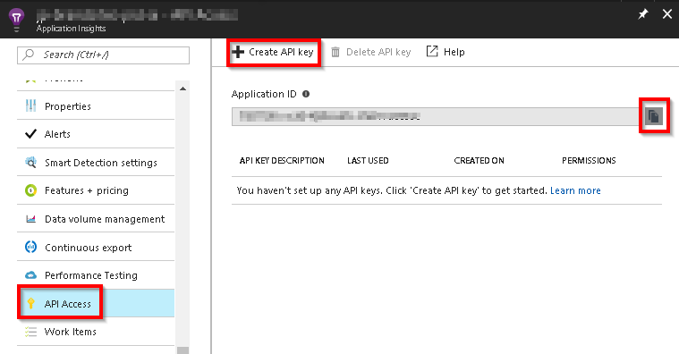 Navigate to API Access blade, copy the Application ID, and create new app setting with the name AI_APP_ID: