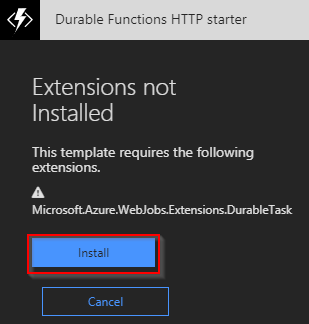 - Click on the Install button, as shown in the preceding screenshot, to start installing the DurableTask extensions. It should take around two minutes to install ...