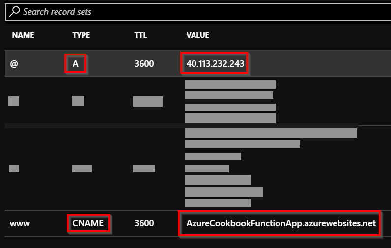If you already have a custom domain and you would like to integrate it with a function app, you need to create the following two records in the DNS: