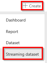 - The next step is to create a streaming dataset by clicking on Create and then choosing Streaming dataset, as shown in the following screenshot: