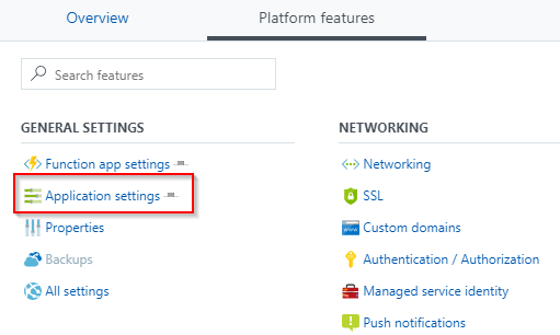 You can navigate to App settings by clicking on the Application settings menu, which is available in the GENERAL SETTINGS section of the Platform features tab: