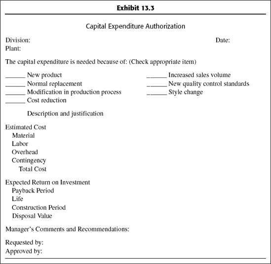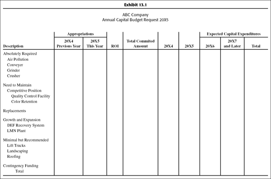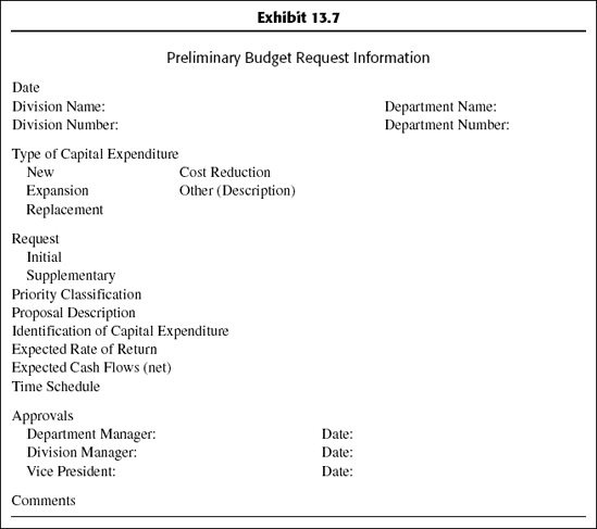 Exhibits 13.10 to 13.16 present illustrative capital budgets.