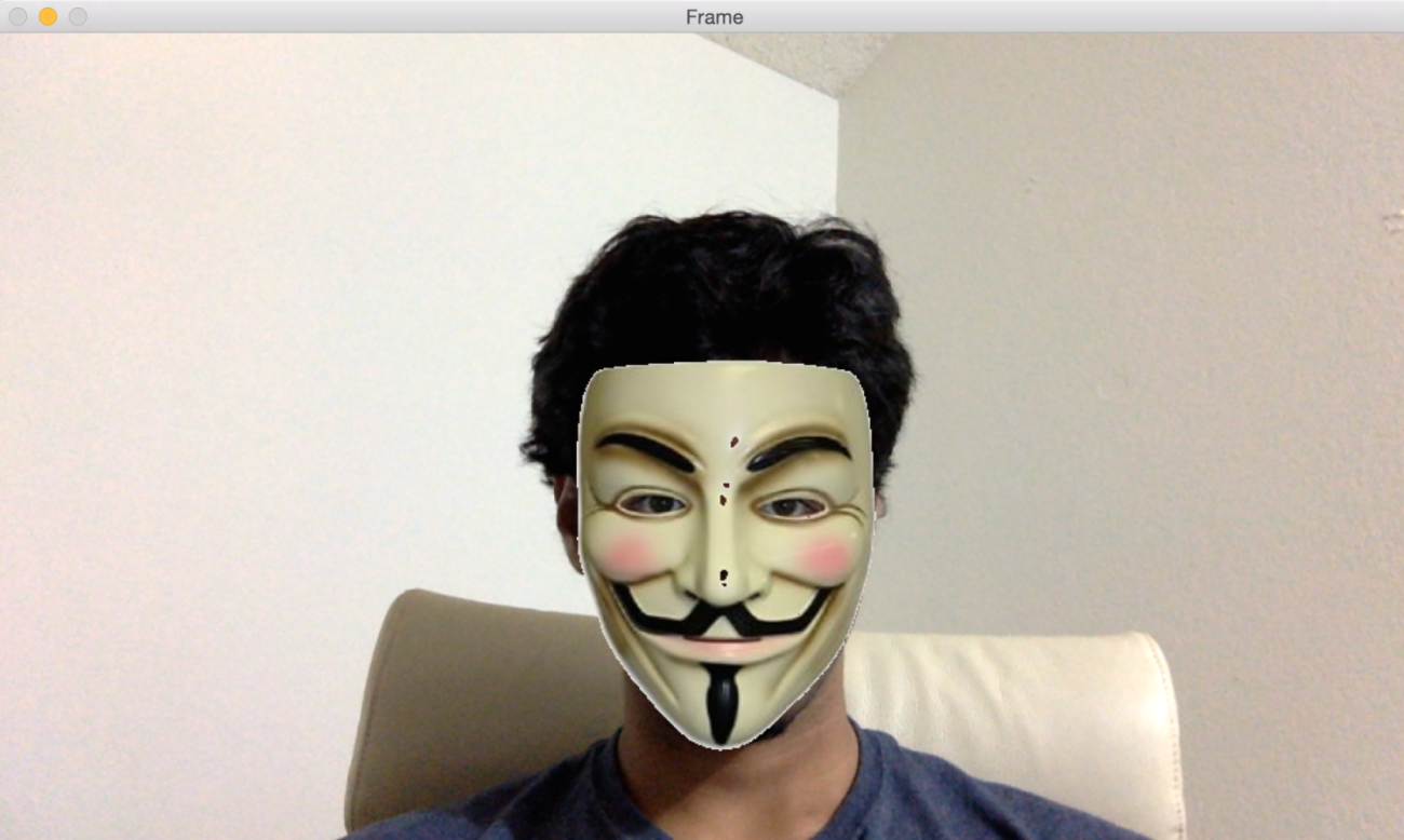 Let's look at the main parts of the code to see how to overlay this mask on the face in the input video stream. The full code is available in the downloadable code bundle provided along with this book: