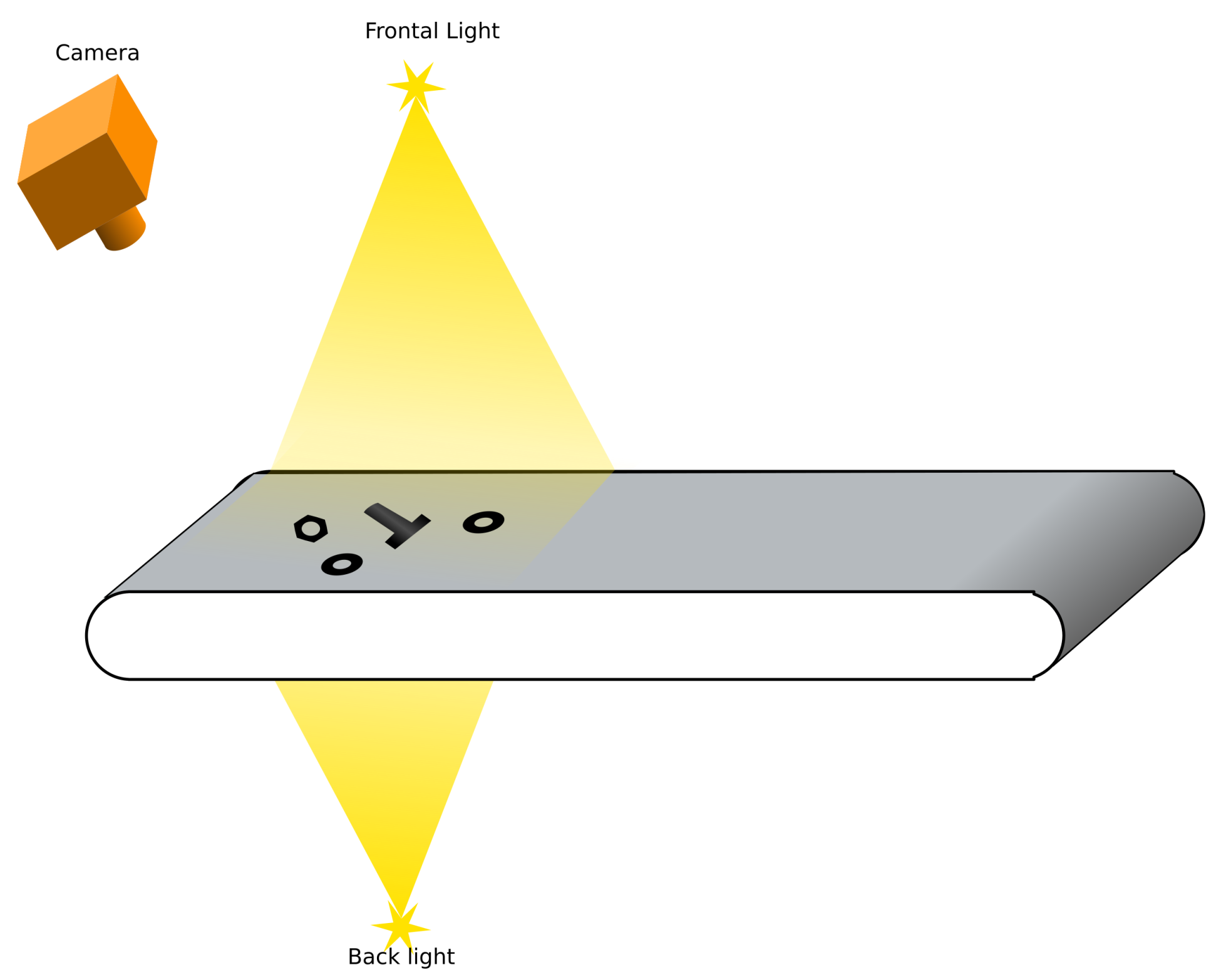 Imagine that we are in a company that produces these three objects. All of them are in the same carrier tape. Our objective is to detect each object in the carrier tape and classify each one to allow a robot to put each object on the correct shelf: