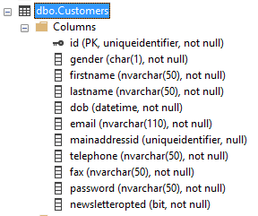 The Customers table can be designed as follows. You can find the database script, named FlixOneStore.sql, with this book: