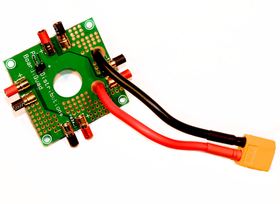 The power distribution board of the drone allows the components of the drone to get a proper current and draw a perfect voltage. We will have four ESCs; we can buy a power distribution board to deliver the proper current to all the ESCs. The following picture is a power distribution board of a drone:
