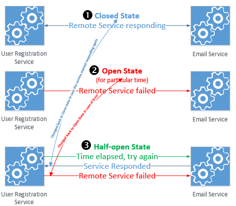 Initially, the circuit breaker is in a Closed State, which means the communication between services are working and the target remote service is ...