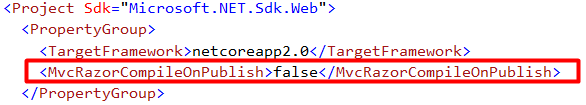 On publishing the ASP.NET Core Razor pages project, all the views are compiled into one single assembly and the published folder size is comparatively small. In case we want view and all the .cshtml files to be generated when the publishing process takes place, we have to add an entry, which is shown as follows: