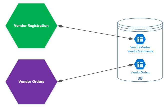 With this design, each service is designed to use specific tables in the database. In this scenario, the database is centralized and hosted at one place. Other microservices also connect to the same database but deal with their own domain-specific tables: