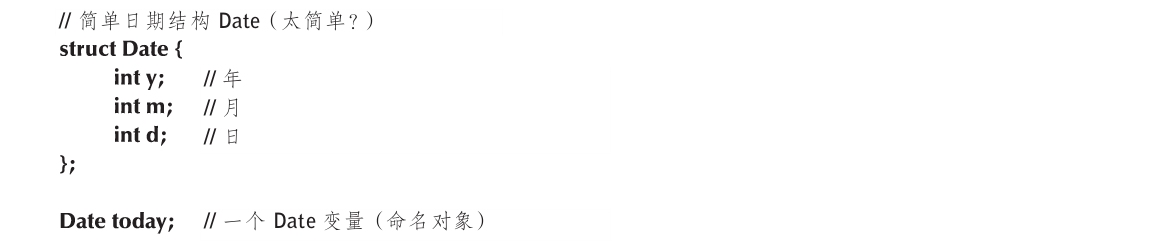 现在已经有了表示日期的Date,我们可以对它进行什么操作呢?实际上我们能做任何操作,因为我们可以访问today(以及任何其他Date对象)的成员,并按自己的意愿读写它们。困难在于事情不是真的那么方便,我们想对一个Date对象做任何事的话,都必须通过读写其成员的方式来进行,例如: