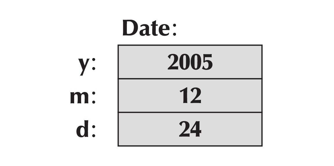 如何才能表示一个日期呢?当我们提出这个问题时,很多人会回答:“年、月、日,这样表示如何?”这不是唯一的答案,也不总是最好的答案,但目前对我们来说够用了,这也是我们将要采用的做法。第一个方案是一个简单的结构: