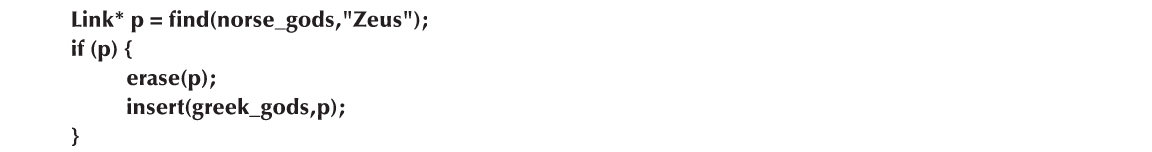你是否注意到了错误?它对你来说应该是一个相当微妙的错误(除非你已熟悉直接处理链接)。如果我们用erase()删除的恰好是norse_gods指向的Link会怎样呢?在这段代码中这种情况同样不会发生,但是为了编写可维护的优质代码,我们必须考虑这种可能性。