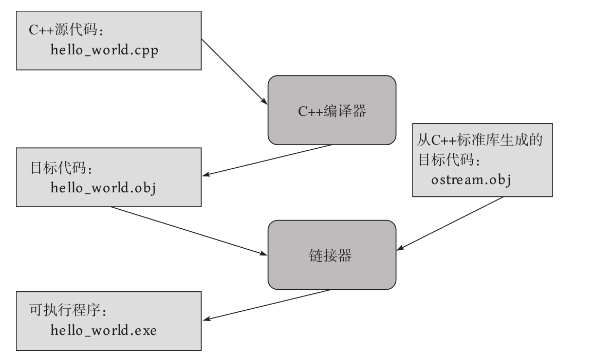 程序通常由几个单独的部分组成,它们经常由不同的人来开发。例如,“Hello,World!”程序包含我们编写的部分和C++标准库。这些单独的部分(有时称为编译单元)必须被编译,然后生成的目标代码必须被链接起来以形成一个可执行文件。用于将这些部分链接起来的程序(很自然地)被称为链接器。