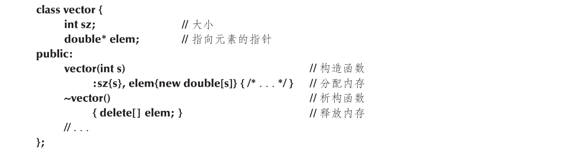 我们使用了标准库算法copy(见附录C.5.2)。它将前两个参数(在本例中是initializer_list的起始和结束位置)指定的元素序列拷贝到从第三个参数开始的元素序列(在本例中是从开始elem的vector的元素)中。 ...