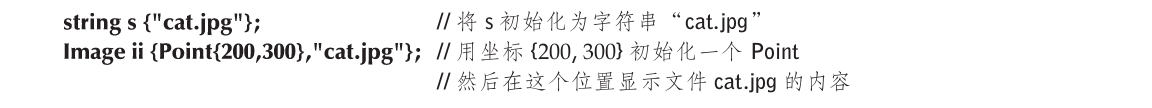 初始化器的含义/用途完全取决于构造函数。标准string的构造函数使用一个字符串作为初始值,而Image的构造函数使用此字符串作为要打开的文件名。通常我们使用构造函数来建立不变式(见9.4.3节)。如果我们无法为类定义一个好的不变式,使得构造函数能建立它的话,那么很可能这个类的设计很糟糕或者它只是一个普通数据结构。