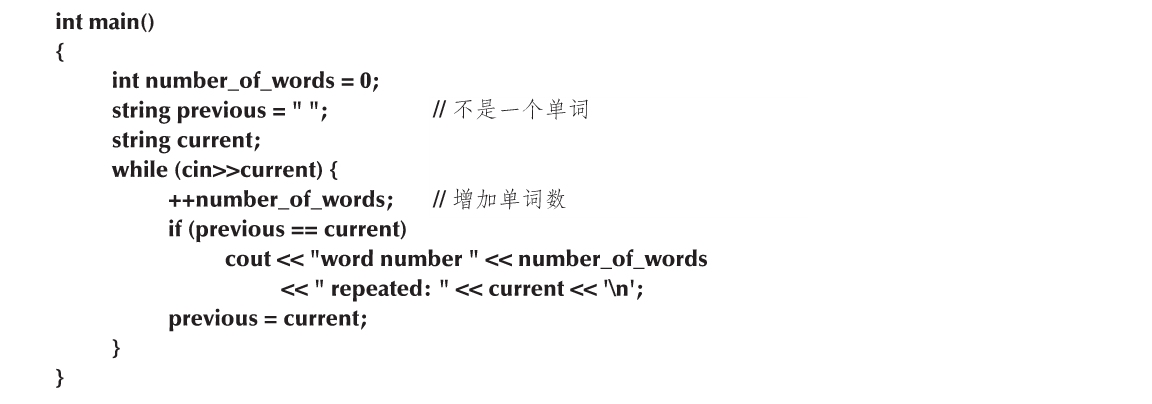 考虑上面的检测重复的相邻单词的例子。我们可以通过得到重复的单词在序列中的位置来改进程序。上述想法的一个简单变种是,我们可以统计单词数并输出重复单词数: