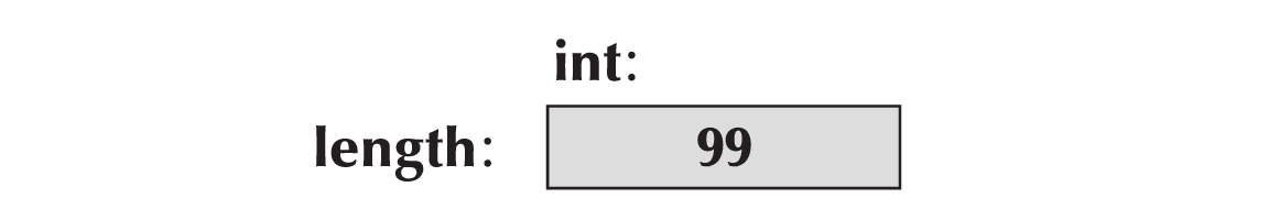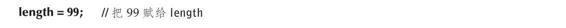 该语句中的length位于赋值号左边(即length是左值),其含义是名字为length的变量,因此赋值表达式的含义是“把99赋给名为length的变量”。要注意区分length用于赋值运算符左边和右边的含义是不同的,length在左边时(即length是左值)表示“名为length的变量”,在右边时(即length是右值)表示“名为length的变量的值”。通过下面的图可以更清楚地解释这个概念: