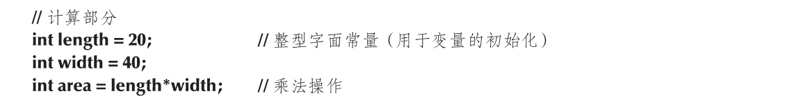 在这里,字面常量20和40用于初始化变量length和width。然后,length和width进行乘法操作,即length和width所表示的值相乘。这时,length可以理解名字为length的变量的值。考虑如下情况: