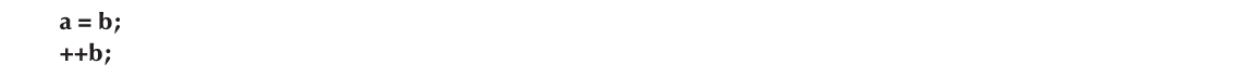 上面是两个表达式语句的例子。注意,=是运算符。因此,a=b;是一个以分号结尾的表达式语句。分号的使用主要是出于技术上的考虑,例如: