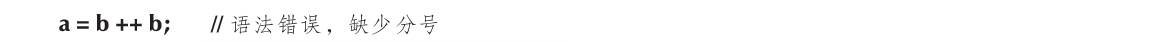 这条语句错误的原因是:如果缺少分号的话,编译器不知道这条语句表示的是a=b++;b;或者a=b;++b;。这种二义性问题不但存在于编程语言中,也存在于自然语言中。例如,“人吃虎”(man eating tiger)这句话就很令人费解:到底谁吃谁啊?如果加上标点符号就很好理解了:“食人虎”(man-eating tiger)。