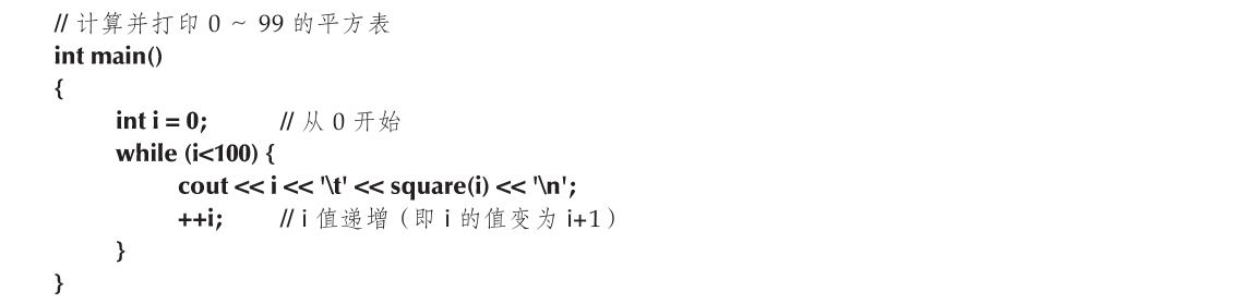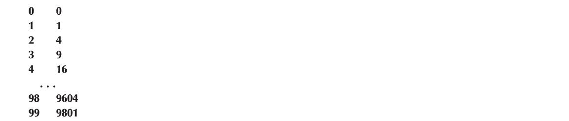 平方表的每一行是一个数,后面跟着一个制表符('\t'),然后是该数的平方。该程序的C++版本如下: