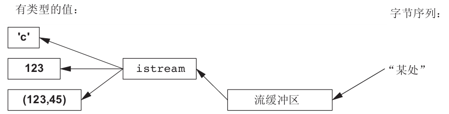 istream对象将一个字符(字节)流转换为有类型的对象。
