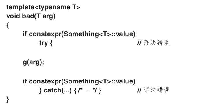重要的是,if constexpr不是一种文本处理机制,因此不能用来打破常规的语法、类型和作用域规则。例如: