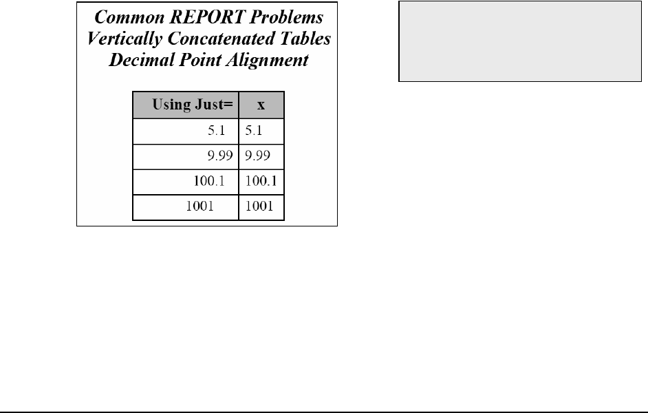 The JUST=DEC does not work for HTML, but can be very useful in PDF and RTF.
