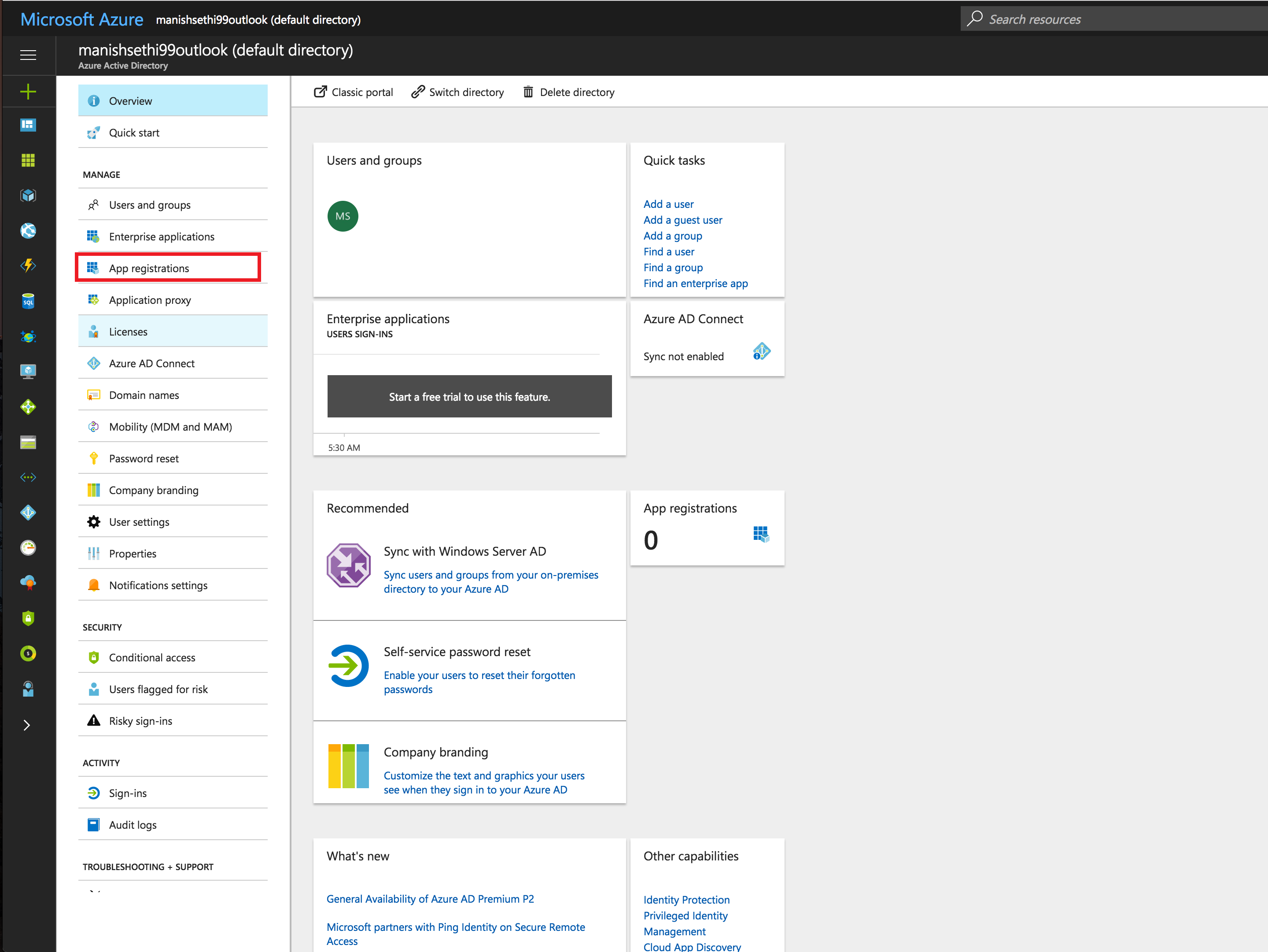 Firstly, we need to navigate to the active directory service, which you can see in the following screenshot: