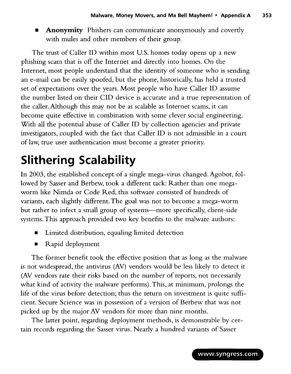 Malware, Money Movers, and Ma Bell Mayhem! • Appendix A 353