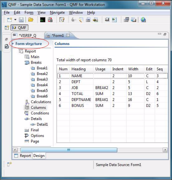 Figure 11-7 Formatting elements for the classic report, shown in the Form Structure pane