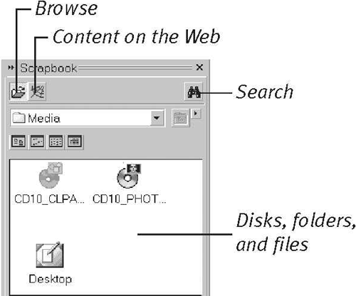 You can use the Scrapbook docker to insert clip art, photos, and other bitmap images from the CorelDraw 10 CDs or your hard disk into your documents.