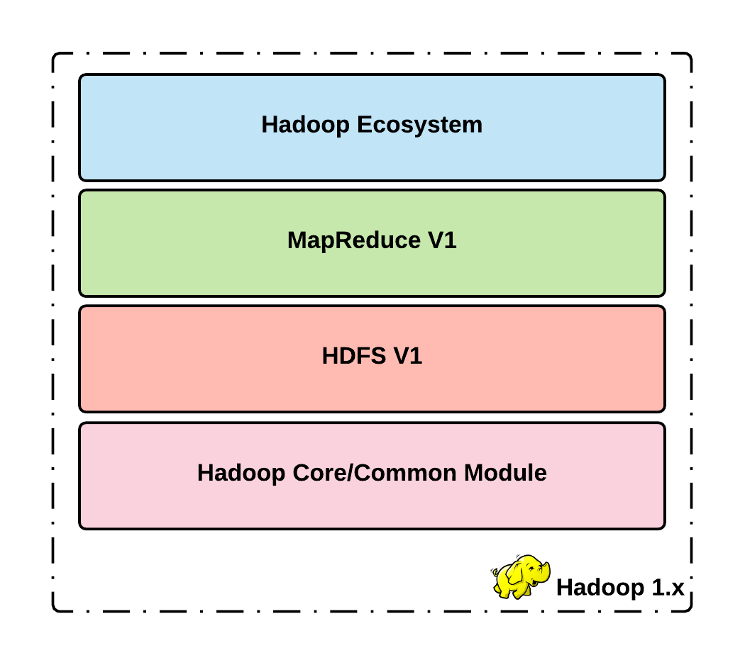 The following figure shows the conceptual architecture of the Hadoop 1.x framework: