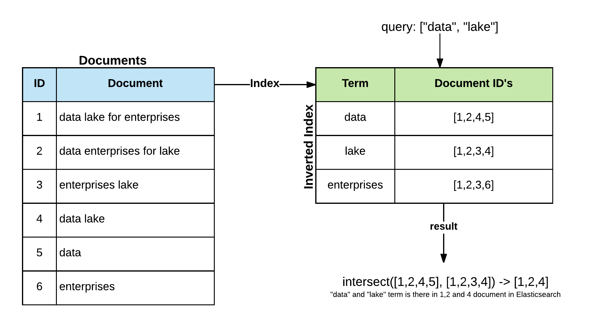 There is a very important concept called as Inverted Index in Elasticsearch. The Lucene text processing library is used in Elasticsearch for breaking down raw text into a series of terms. Once terms are broken these are stored in what is known as Inverted Index. The figure (Figure 07) shows an Inverted Index, which is in turn is a map data structure with key as term and value as list of document ID’s where this term exists in the document. Now you know why it is called Inverted Index, because in this data structure we have term as key and value as ID: